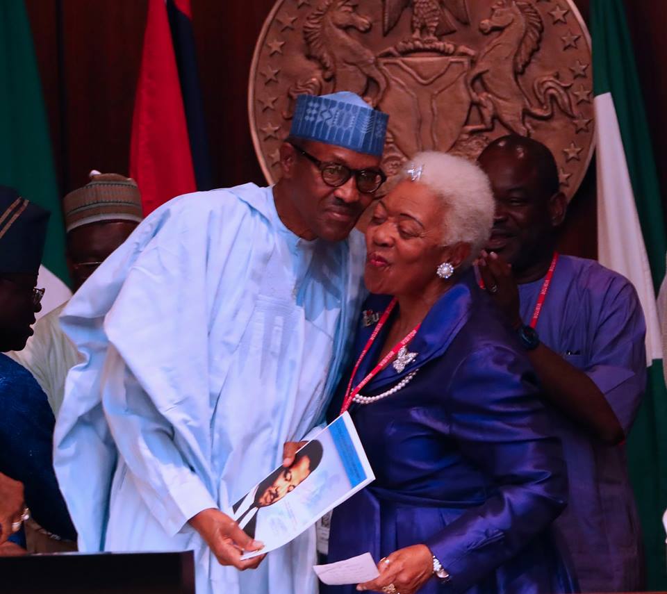 President Muhammadu Buhari posing with a member of Martin Luther King Jr family