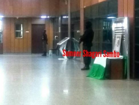 TORI.NG reported earlier that the security at the National Assembly complex has been heightened with gun-bearing and masked operatives of the Department State Services (DSS) seen manning strategic locations within the parliament building. Now, photos have emerged to corroborate the story.